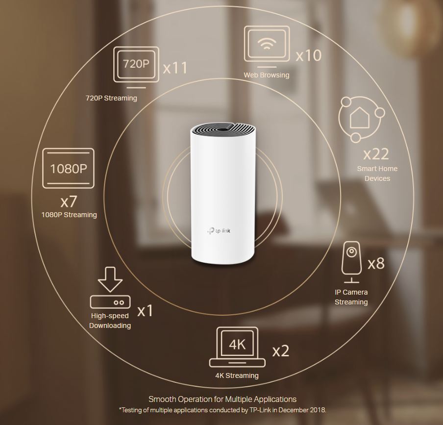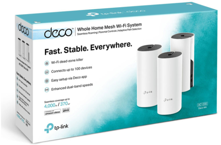 TP-LINK AC1200 Deco M4 3-pack Mesh Dual Band Gigabit brezžični usmerjevalnik zagotavlja hitre in stabilne povezave s hitrostjo do 1167 Mb/s. Enostavna namestitev z aplikacijo Deco.