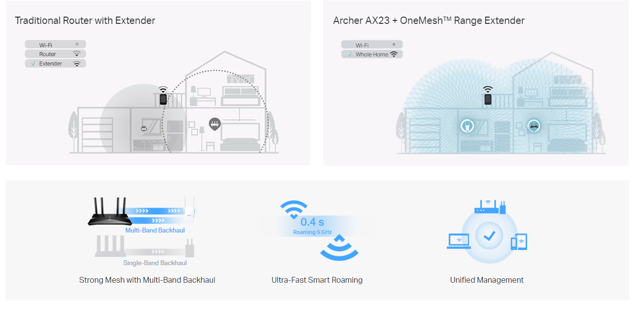 TP-LINK Archer AX23 AX1800 Dual Band Wi-Fi 6 Usmerjevalnik prinaša najnovejšo generacijo Wifi tehnologije, ki zagotavlja hitrejšo internetno povezavo z manj zamika in večjimi kapacitetami