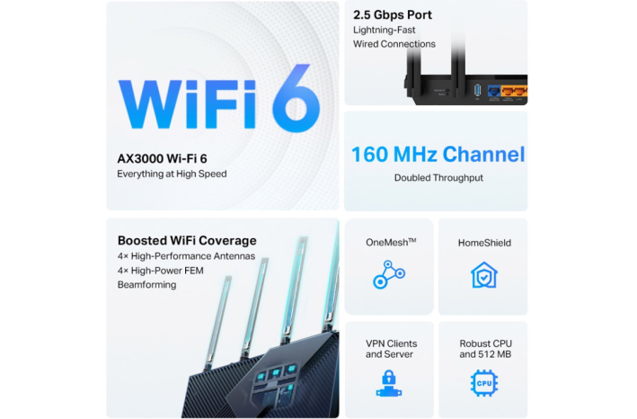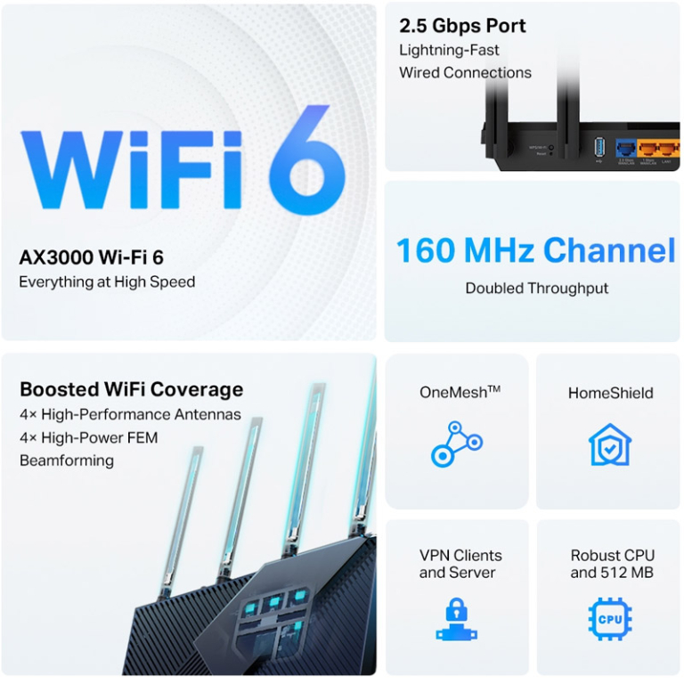 TP-LINK Archer AX55 Pro AX3000 Multi-Gigabit Dual Band WiFi 6