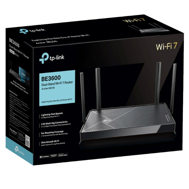 TP-LINK Archer BE230 BE3600 Dual-Band Wi-Fi 7 3,6Gbps VPN usmerjevalnik-router je vrhunski usmerjevalnik z visoko hitrostjo prenosa podatkov in izjemno zmogljivostjo.