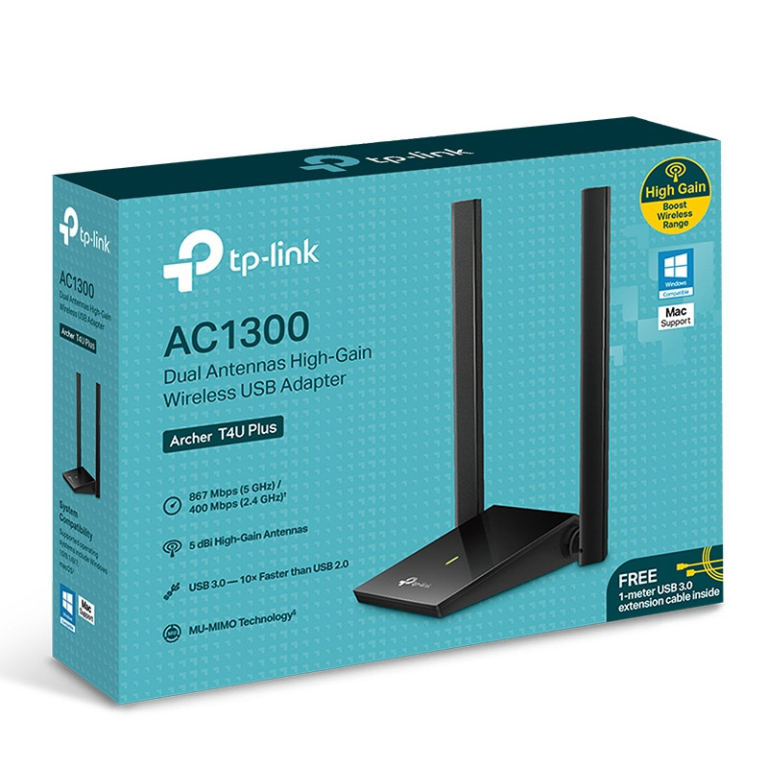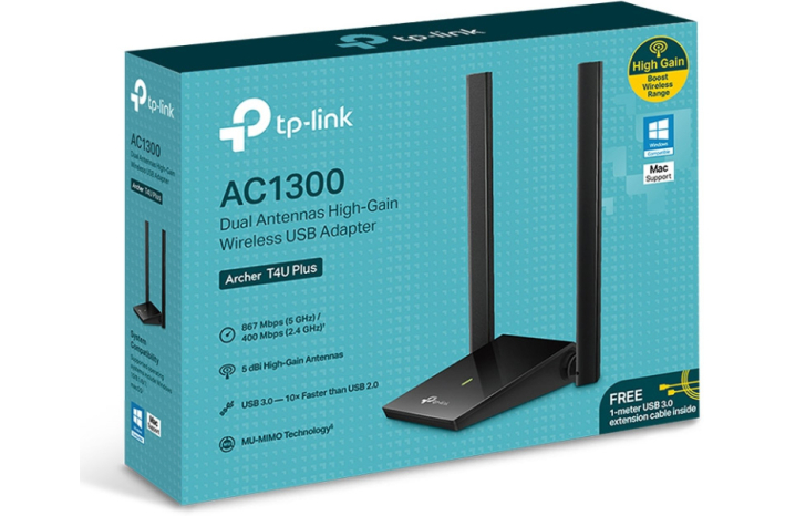 TP-LINK Archer T4U Plus AC1300 Dual USB brezžična mrežna kartica je izjemno hitra in zanesljiva rešitev za brezžično povezovanje.