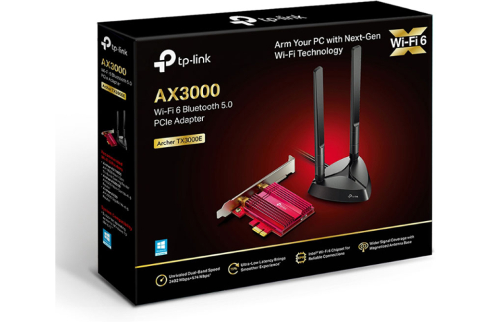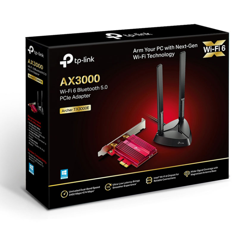 dimenzija: 95,2 x 120,8 x 21,5 mm tip antene: 2x high gain Dual band antena, magnetna podlaga antene nabor čipov: Intel Wi-Fi 6 BREZŽIČNI STANDARD IEEE 802.11ax/ac/n/a 5 GHz IEEE 802.11ax/n/g/b 2.4 GHz Bluetooth 5.0/4.2/4.0 WLAN Signal Rate: 5 GHz 11ax: Up to 2402 Mbps (dynamic) 11ac: Up to 1733 Mbps (dynamic) 11n: Up to 300 Mbps (dynamic) 11a: Up to 54 Mbps (dynamic) 2.4 GHz 11ax: Up to 574 Mbps (dynamic) 11n: Up to 300 Mbps (dynamic) 11g: Up to 54 Mbps (dynamic) 11b: Up to 11 Mbps (dynamic) WLAN Reception Sensitivity: 5 GHz : 11ax HT160:-56.25dBm 11ax HT80: -59dBm 11ax HT40: -62.25dBm 11ax HT20: -65dBm 11ac HT160:-62dBm 11ac HT80: -65.5dBm 11ac HT40: -69.75dBm 11ac HT20: -73.75dBm 11n HT40: -74.5dBm 11n HT20: -77.5dBm 11a 54Mbps: -77.75dBm 11a 6Mbps: -94.5dBm 2.4GHz : 11ax HT40: -60.75dBm 11ax HT20: -63.75dBm 11n HT40: -73dBm 11n HT20: -76.25dBm 11g 54Mbps: -76.5dBm 11b 11Mbps: -89dBm WLAN Transmit Power 5 GHz : 27dBm(FCC) / 23dBm(CE) (EIRP) 2.4 GHz : 26dBm(FCC) / 20dBm(CE) (EIRP) brezžična varnost: Support 64/128 bit WEP, WPA/WAP2/WPA3, WPA-PSK/WPA2-PSK, 802.1x Bluetooth profili: Archer TX3000E podpira domače BT profile, implementirane v sistemu Windows 10. Za najnovejše informacije o Windows 10 BT profilih glejte https://support.microsoft.com/en-us/help/10568/windows-10-supported-bluetooth-profiles |