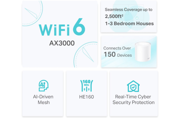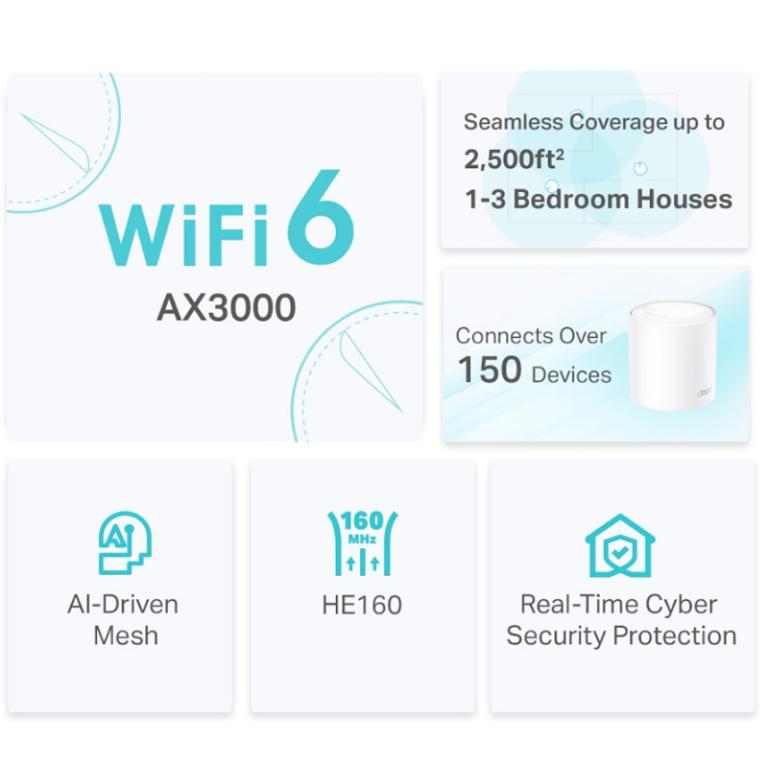 Z okrepljeno pokritostjo do 230 m2 in možnostjo uporabe v 1-3 sobnem stanovanju, bo TP-LINK Deco X50 poskrbel za brezhibno WiFi izkušnjo v vseh kotičkih vašega doma.