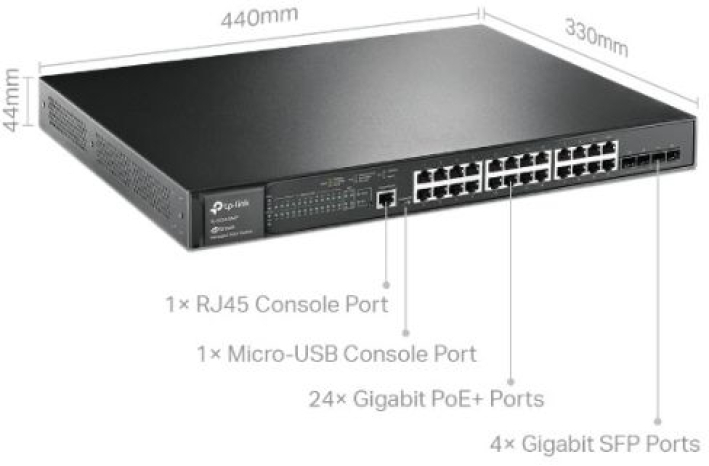 Polna gigabitna vrata: 24× gigabitna PoE+ vrata in 4× gigabitna SFP reža zagotavljajo hitre povezave.