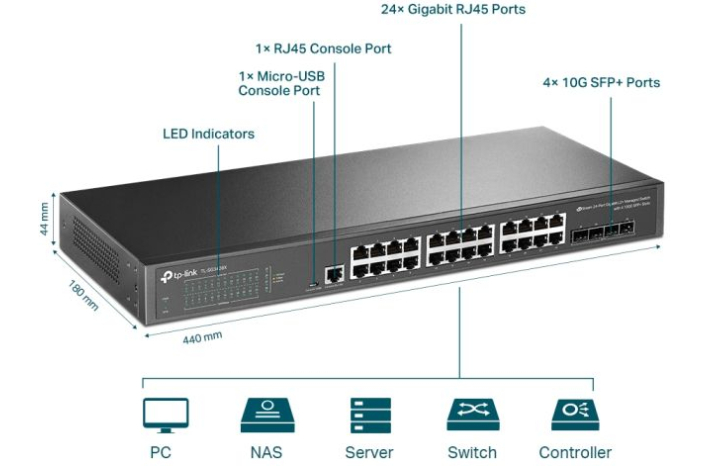 10G bliskovito hitra navzgornja povezava: 4 × 10 Gbps SFP+ reže omogočajo povezljivost z visoko pasovno širino in preklopno zmogljivost brez blokiranja.