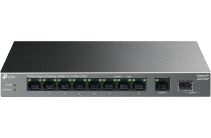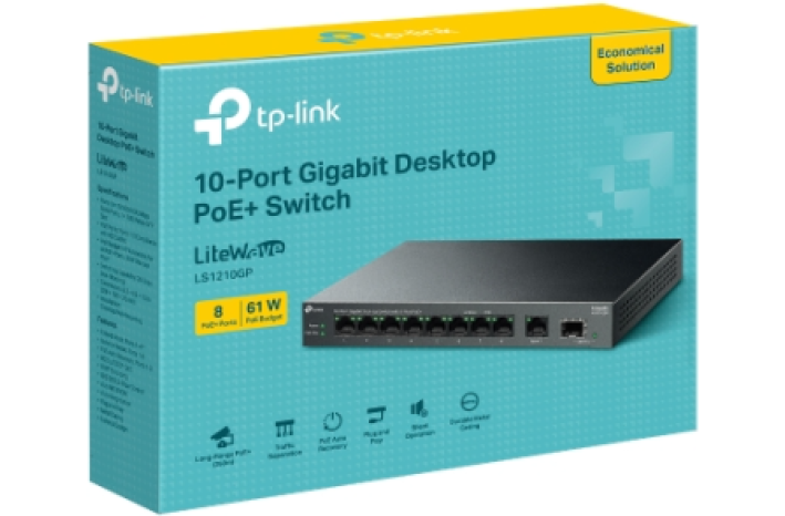 Proračun 61 W PoE: osem gigabitnih vrat 802.3af/at-compliant PoE+ enostavno povezuje in napaja fiksne naprave, kot so IP kamere, dostopne točke in IP telefoni, prek enega kabla. Vsaka vrata PoE podpirajo do 30 W izhodne moči PoE.*