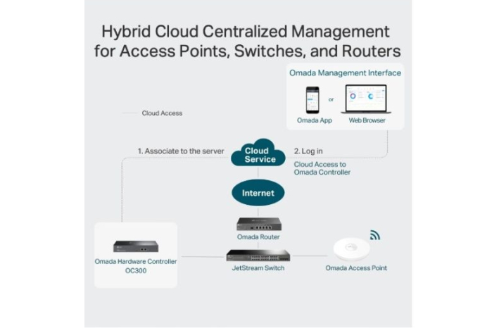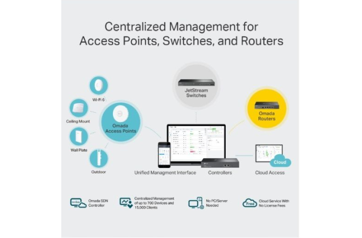 Centralizirano upravljanje: do 500 dostopnih točk Omada, 100 stikal JetStream in 100 usmerjevalnikov Omada.