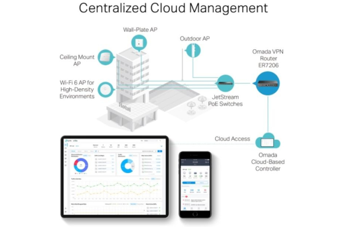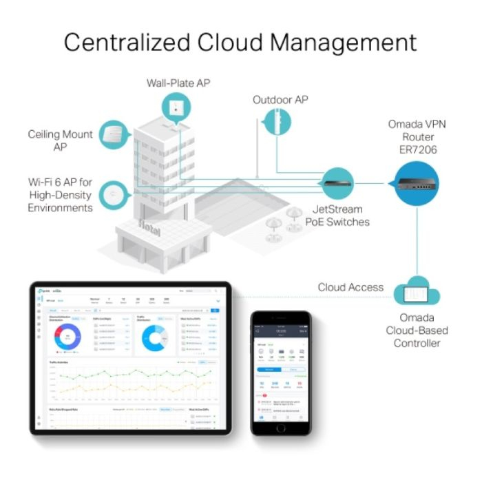 Integrirano v Omada SDN: Zero-Touch Provisioning (ZTP)**, centralizirano upravljanje v oblaku in inteligentno spremljanje.