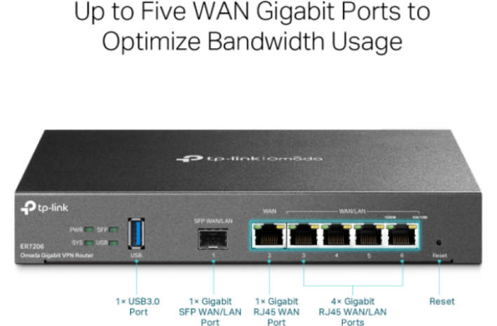 Do 5 vrat WAN: gigabitna vrata SFP WAN in gigabitna vrata RJ45 WAN optimizirajo uporabo pasovne širine.