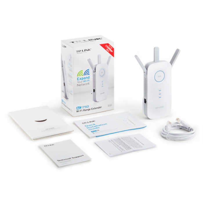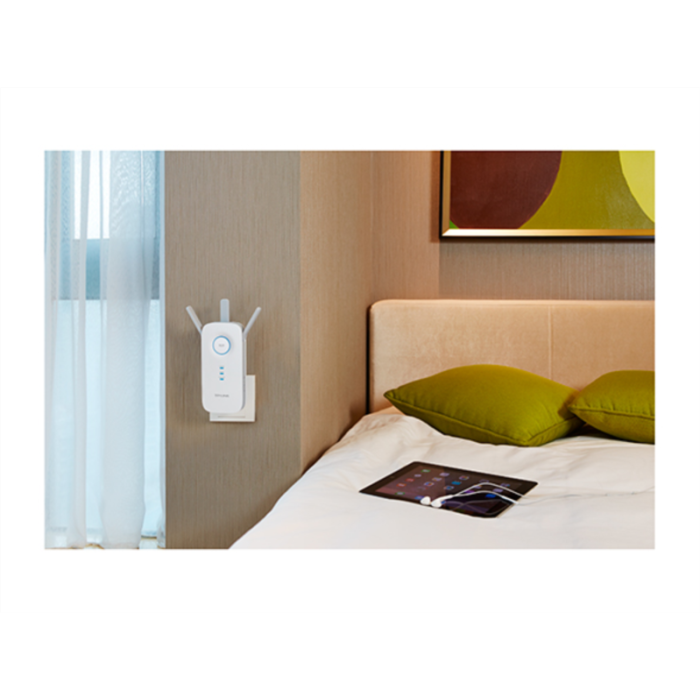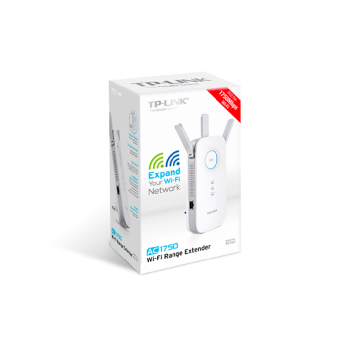 TP-LINK RE450 Range Extender podaljša in izboljša domet vašega brezžičnega omrežja in odstrani mrtve točke. Omogoča Dual Band delovanje z hitrostjo do 1750 Mbps oz. 450Mbps na 2.4GHz frekvenci in 1300 Mbps na 5 GHz frekvenci. S tremi nastavljivimi zunanjimi antenami in indikatorjem, ki pomaga najti optimalno lokacijo, je podaljševanje omrežja zelo enostavno. Podpira vse Wi-Fi standarde, vključno z 802.11ac. S pritiskom na RE gumb enostavno razširite vaše omrežje. Ethernet port (10/100/1000) omogoča priklop ožičenih naprav.