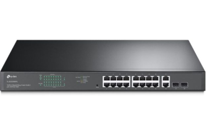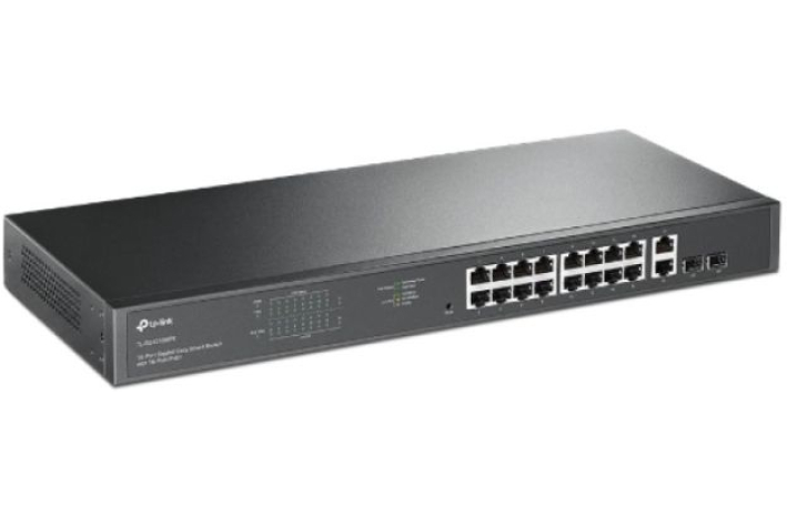 16× PoE+ gigabitna vrata RJ45, 2× gigabitna vrata RJ45 brez PoE in 2× kombinirane gigabitne SFP reže.