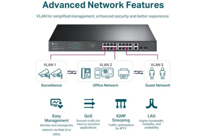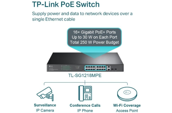 Proračun moči PoE je do 250 W, zaradi česar je idealen za nadzorne sisteme malih in srednje velikih podjetij.*