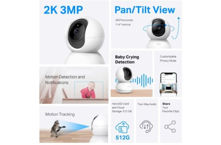 Video visoke ločljivosti: Tapo C210 ponuja 2K 3mp video visoke ločljivosti, ki uporabnikom zagotavlja jasne in podrobne posnetke.