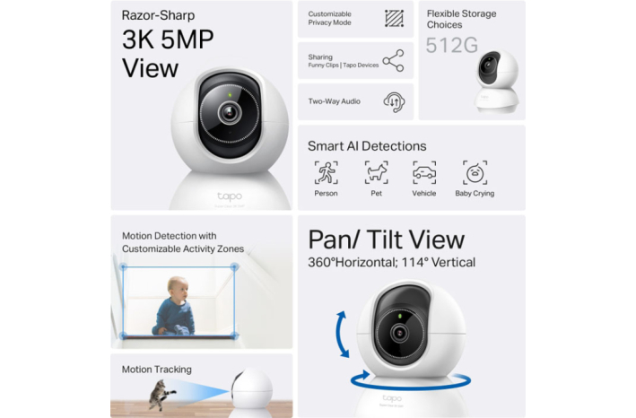 TP-LINK Tapo C230 5MP 3K nagib/vrtenje Wi-Fi notranja nadzorna kamera