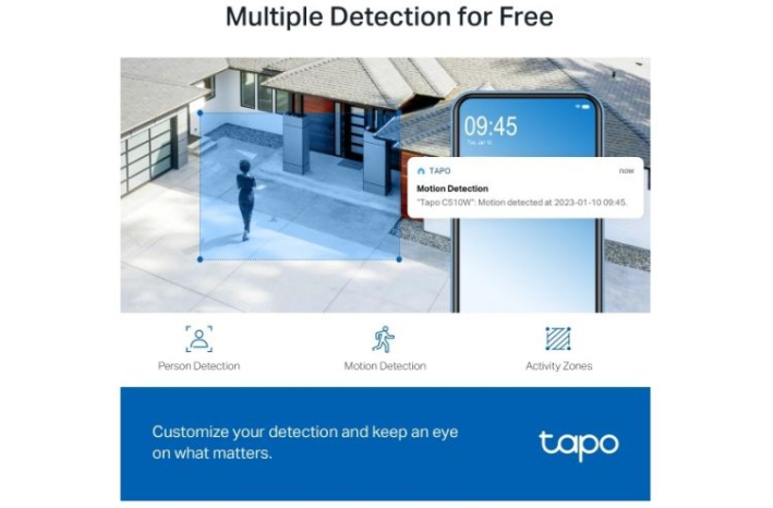 Pametno sledenje gibanju-Tapo C510W sledi gibanju z visoko hitrostjo vrtenja, kar vam zagotavlja, da pazite na bolj vitalna področja.