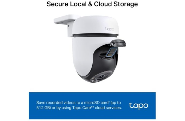 Lokalna shramba in shramba v oblaku - shranite posnete videoposnetke na kartico microSD (do 512 GB)† ali z uporabo storitev v oblaku Tapo Care**.