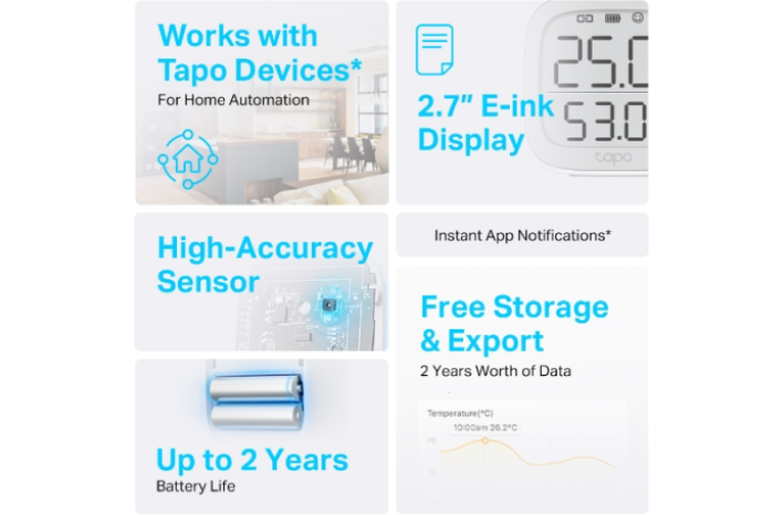 Sprotno in natančno spremljanje - Zaznava temperaturo in vlažnost v realnem času z veliko natančnostjo. (Merilna natančnost: ±0,54 ºF, ±3% RH).