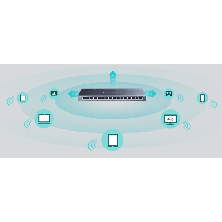 Nova generacija TL-SG116 16-Port 10/100/1000Mbps Desktop stikala ima inovativne tehnologije, ki povečajo zmogljivost omrežja z manj energije. Samodejno prilagaja porabo energije in zagotavlja tiho delovanje brez ventilatorja.