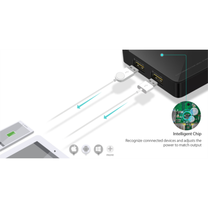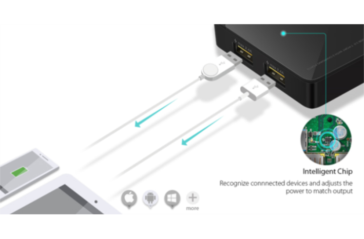 Dva ekskluzivna polnilna porta 5V/2.4A zagotavljata optimalno polnjenje iOS in Android mobilnih naprav.