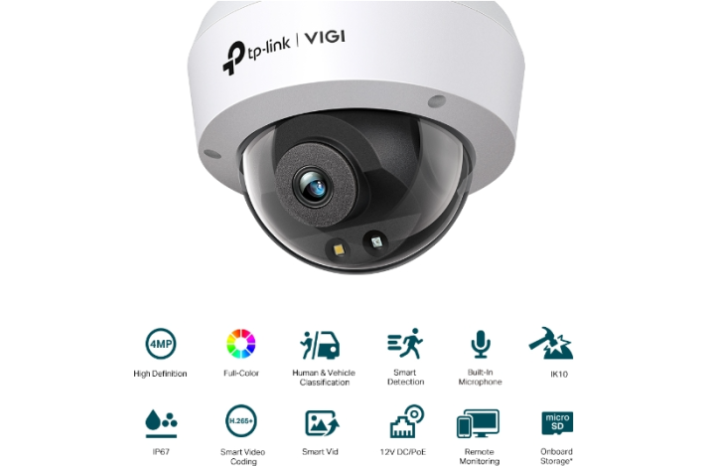 IK10 Odporen proti vandalizmu & IP67 Vodoodporen: Ta kupolasta kamera VIGI z odpornim proti vandalizmu robustnim ohišjem in vodotesno zasnovo je izdelana tako, da vzdrži vandalizem in težka okolja z dežjem in prahom za stalno varnost kjer koli in kadarkoli.