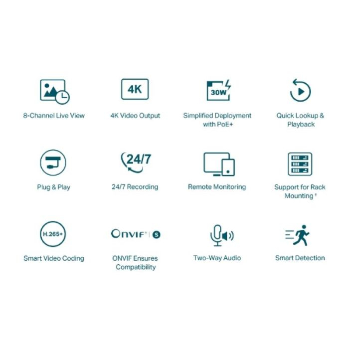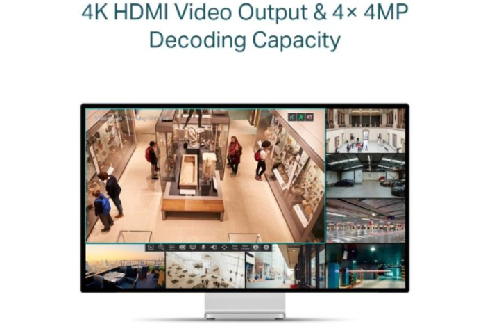 Video izhod 4K HDMI in zmogljivost dekodiranja 16 MP: Ostra ločljivost slike do 8 MP in 8-kanalni zaslon zagotavljata, da zajamete vse podrobnosti iz vseh kotov.