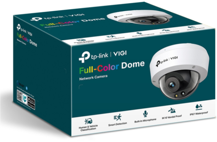 Spremljajte 24-urne jasne in barvite podrobnosti tudi v ponoči. Polnobarvna kamera VIGI zagotavlja največjo ločljivost 4 MP in zagotavlja barvno spremljanje z lečo z veliko zaslonko, visoko občutljivim senzorjem in priloženimi dodatnimi lučmi.