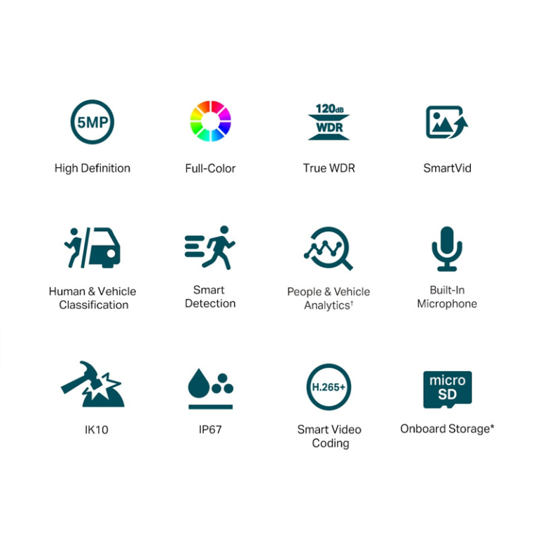 Spremljajte 24-urne jasne in barvite podrobnosti tudi v temni noči s kakovostno nadzorno kamero TP-LINK Vigi C250. Zagotavlja visoko ločljivost 5MP in barvno spremljanje v vseh svetlobnih pogojih.