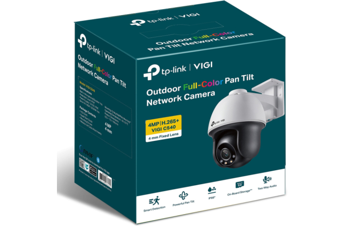 TP-LINK VIGI C540 4mm je visokoločljiva zunanja nadzorna kamera, ki omogoča 24-urno barvno snemanje tudi v temnih pogojih. Zagotavlja inteligentne možnosti za varovanje lastnine in natančna obvestila o dogodkih.