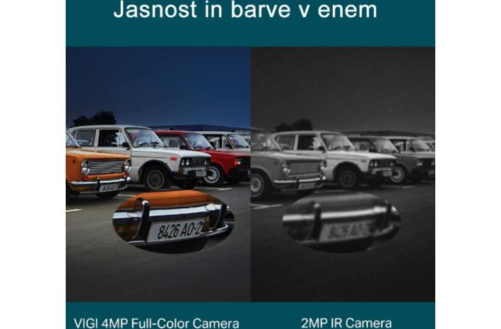 Z uporabo 4 MP super visoke ločljivosti ta kamera omogoča zaznavanje najmanjših podrobnosti v polnih barvah, 24 ur na dan.