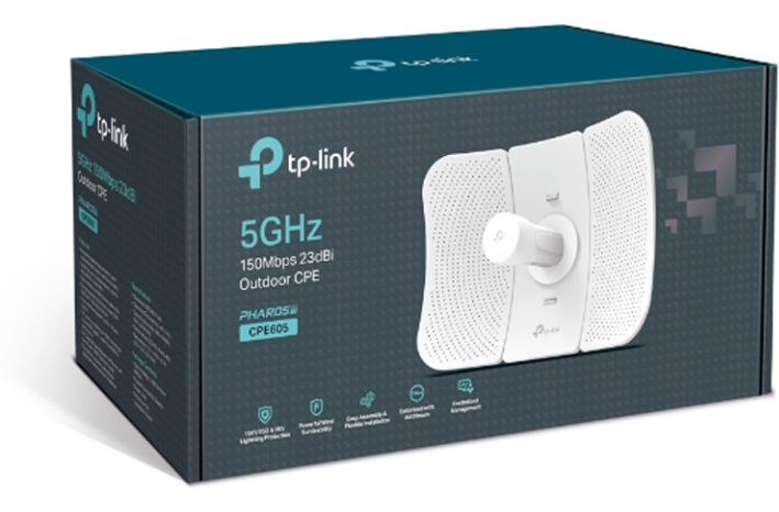 TP-LINK WLAN CPE605 je opremljen s 23dBi usmerjeno anteno z visokim izkoristkom, idealno za dolge razdalje. Z inovativnimi deli z zaskočnim zaklepom ter trdno strukturno zasnovo je stabilen tudi v močnem vetru.