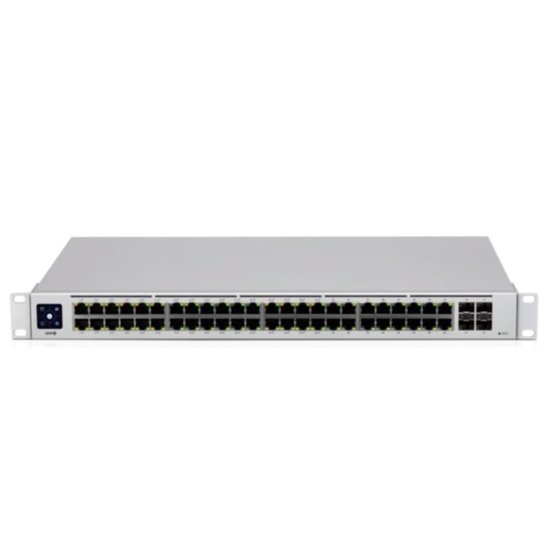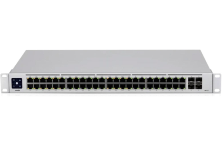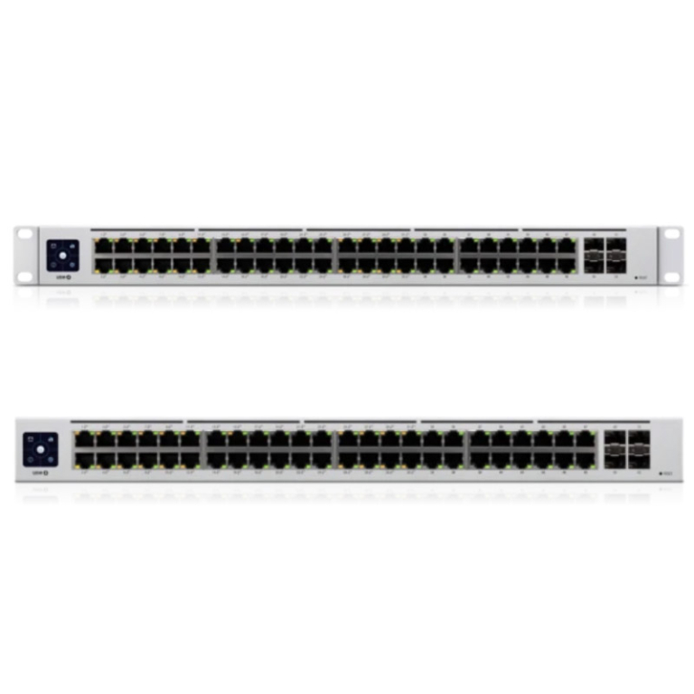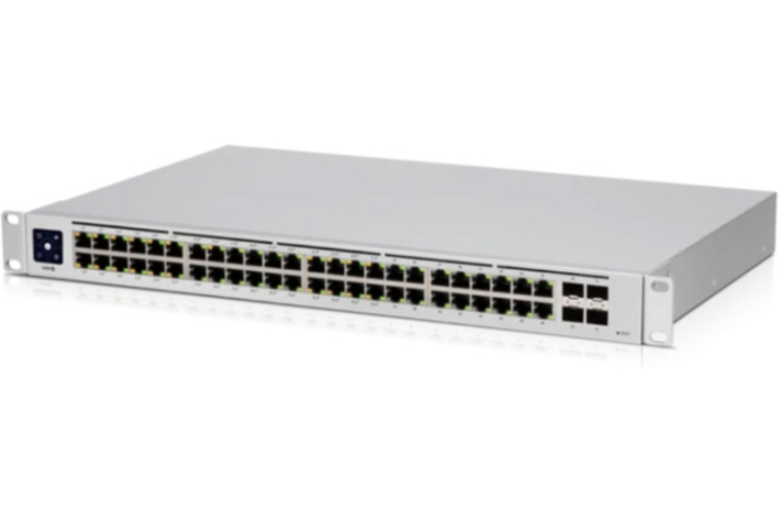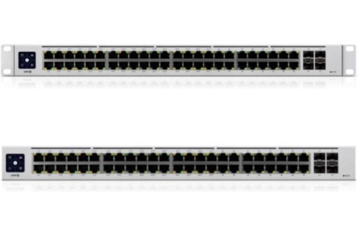 USW-48-PoE je nastavljivo stikalo Gigabit Layer 2 z 48. Gigabit Ethernet priključki, vključno s 32. samodejnimi zaznavami 802,3at PoE + in 4 SFP vrati. Omogoča Gigabit PoE povezave do vaših RJ45 Ethernet naprav in Gigabitne optične povezave do vašega omrežja podjetja. USW-48-PoE ima 1,3-palčni LCM na dotik za zagotavljanje stanja.