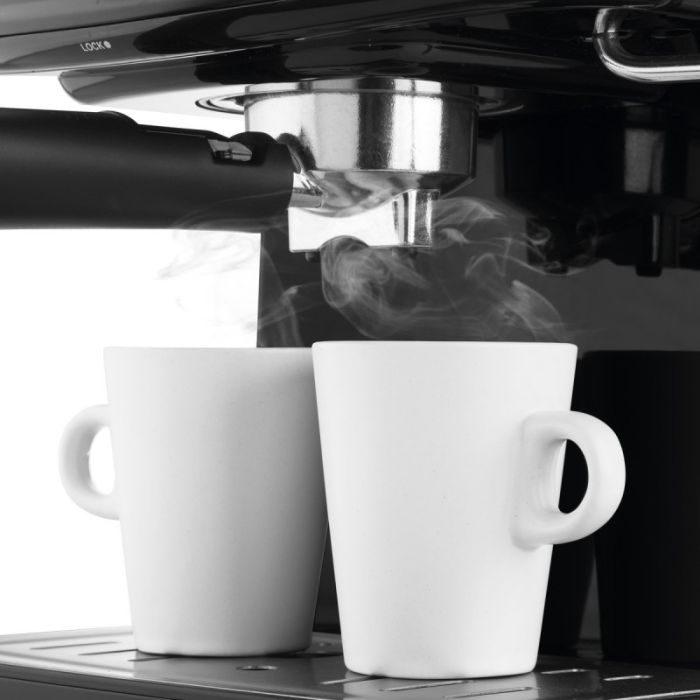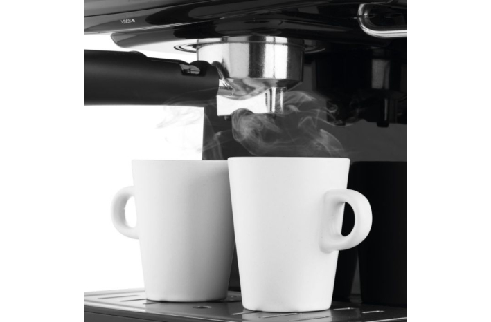Pripravite popolno kavo doma zahvaljujoč 20-barski tlačni črpalki. Izberite svoj stil kave: mleto kavo ali sistem z mleto kavo v kapsulah in postrezite eno ali dve skodelici kave in okusne kapučine.