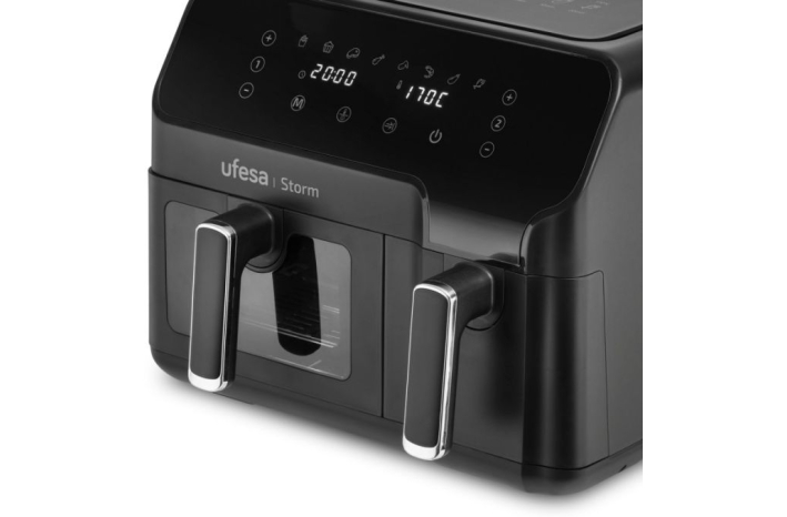 Njegov časovni in temperaturni nadzor je digitalen, s časovnikom do 60 minut in nadzorom temperature do 200 ºC.