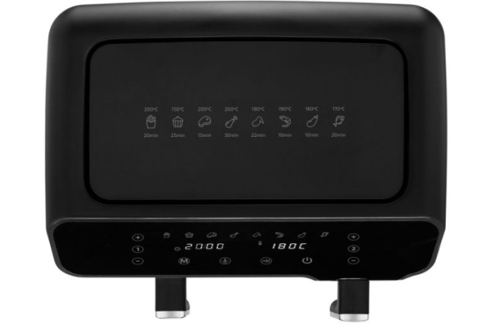 Ima tudi 8 prednastavljenih programov: čips, pečenje (na primer za piškote), meso, piščančja stegna, piščančja krila, morski sadeži, zelenjava in ribe.