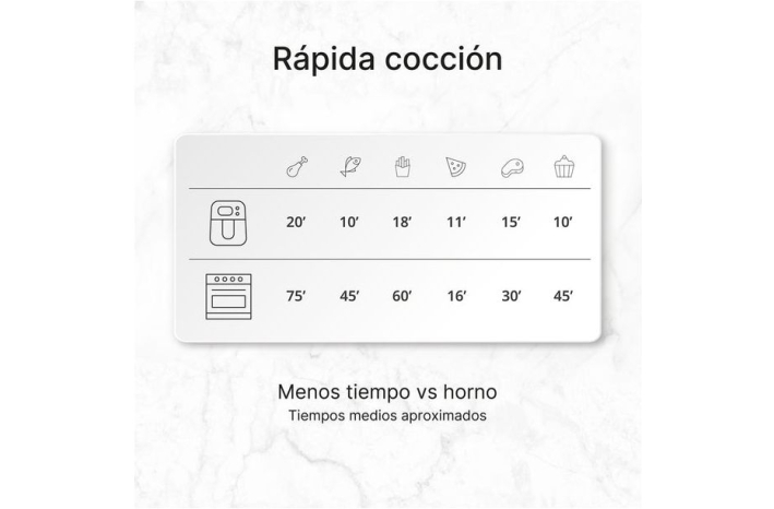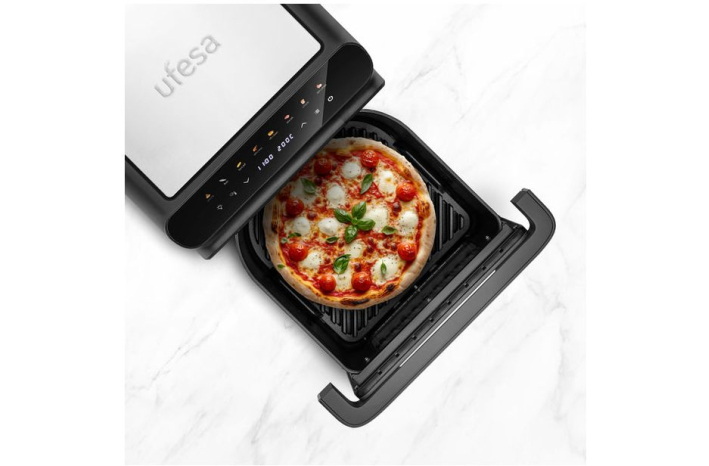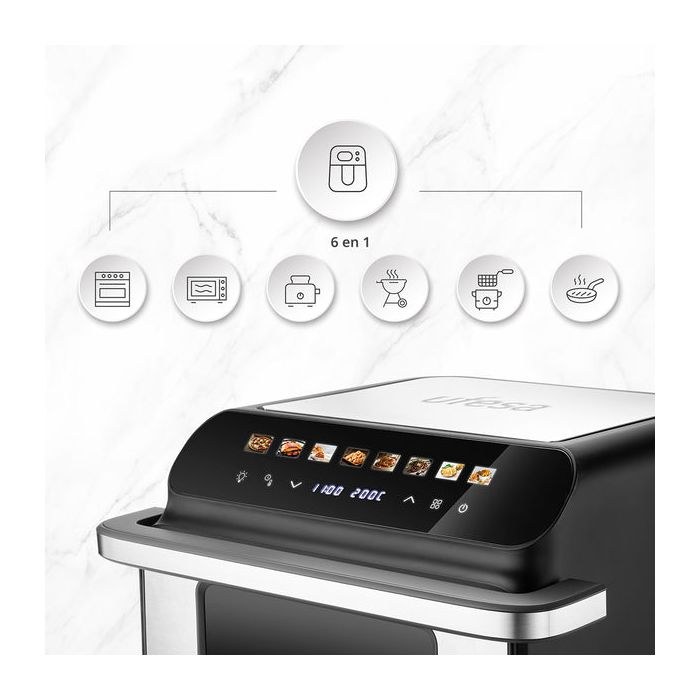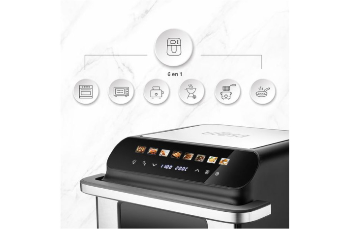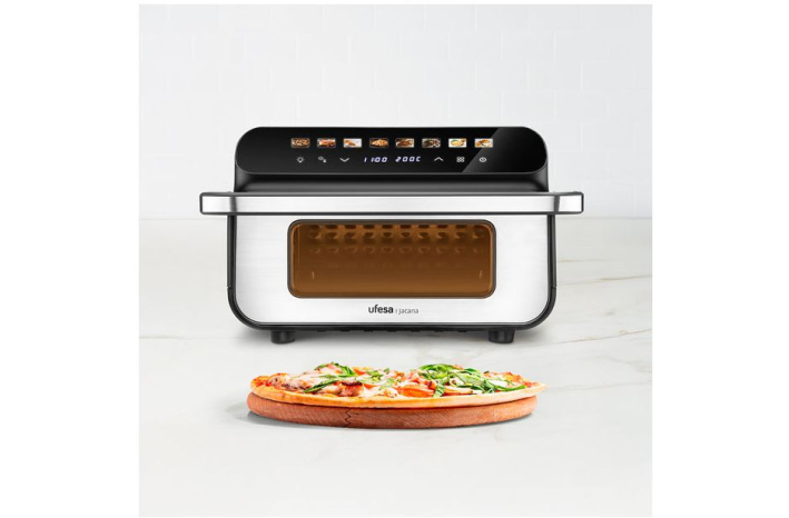 S kapaciteto 10 litrov in močjo 2000 W je idealna za pripravo obrokov za 6 do 8 oseb. Zgornji barvni zaslon na dotik omogoča enostavno upravljanje časa (0–60 min), temperature (80 °C–230 °C) in izbiro med 8 prednastavljenimi programi za različne jedi.