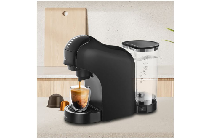Odstranljiv rezervoar za vodo olajša dolivanje in čiščenje, združljivost z mleto kavo in kapsulami Dolce Gusto, Nespresso ter Delta pa vam prinaša raznolikost pri izbiri.