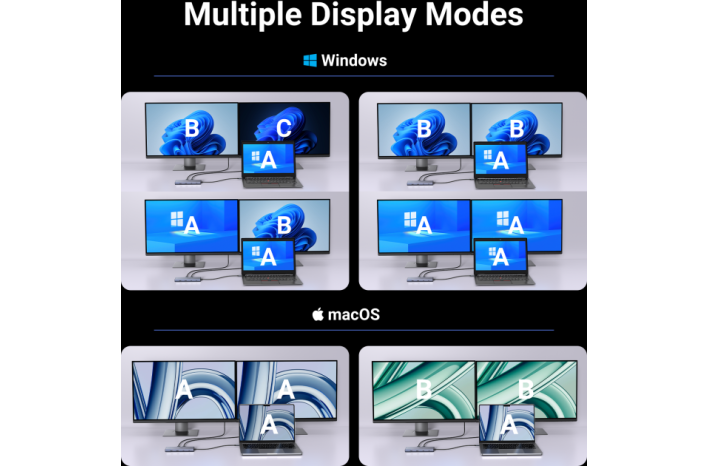 Doživite osupljive slike z dvojnimi zasloni 4K pri 60 Hz. Kot nalašč za večopravilnost, to vozlišče omogoča zrcaljenje ali razširitev zaslona na dva monitorja, kar zagotavlja poglobljeno izkušnjo gledanja.