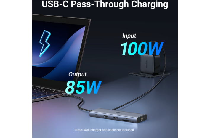 Med uporabo razširitvene postaje naj bodo vaše naprave napajane. Funkcija prehodnega polnjenja USB-C vam omogoča polnjenje prenosnega računalnika ali drugih naprav ob hkratni uporabi funkcij vozlišča. Podpira PD3.0 do 100W.