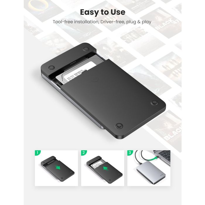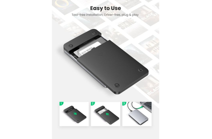 Enostavna montaža v nekaj sekundah, brez orodja, za 2,5 "SATA HDD / SSD ni potrebno dodatno napajanje.