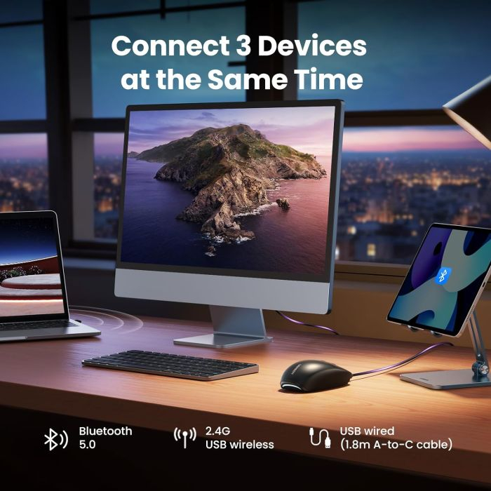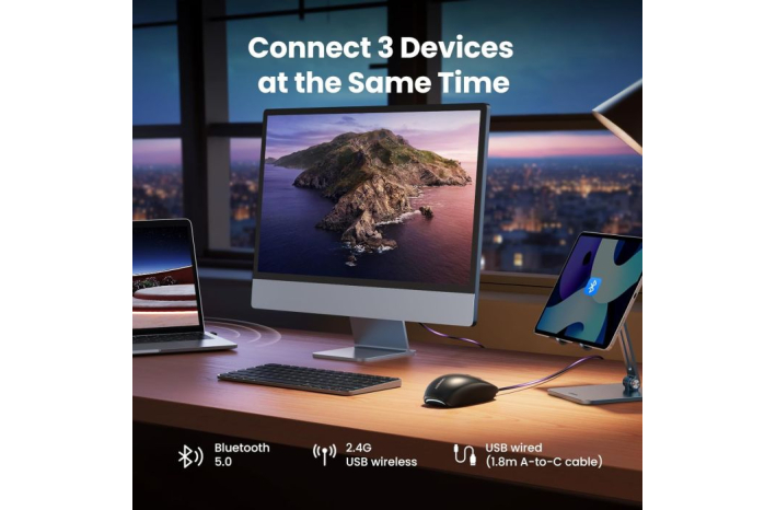 Podpira tri vrste povezljivosti: žično, 2.4G in Bluetooth 5.0.