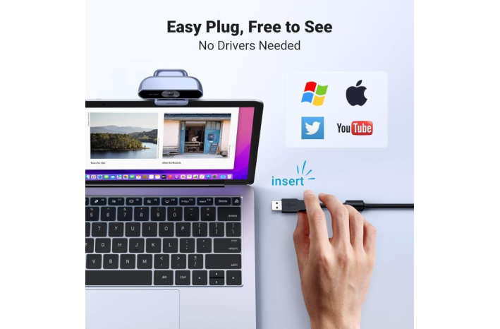 Leča spletne kamere ima 200 W slikovnih pik, ločljivost videa pa je kar 1080P@30FPS. Ta spletna kamera s stekleno lečo polne visoke ločljivosti zagotavlja kristalno čiste videoposnetke. Fotoaparatu je priložen napajalni kabel USB dolžine 6,6 ft, ki omogoča izjemno velike razdalje. To spletno kamero je mogoče uporabljati na starejših namiznih računalnikih brez kamer ali kot čistejšo možnost za prenosnike, kot nalašč za video klice, pretakanje in drugo.