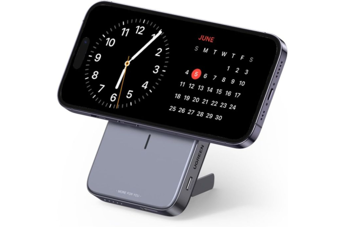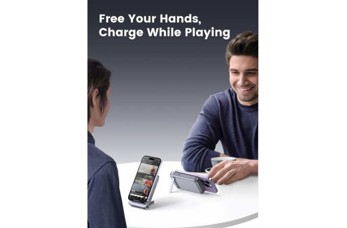 Vgrajeno zložljivo stojalo je dovolj stabilno, da podpira tudi največje telefone iPhone v pokončni in ležeči postavitvi, kar vam omogoča gledanje videoposnetkov ali opravljanje video klicev s prijatelji s prostoročno napravo