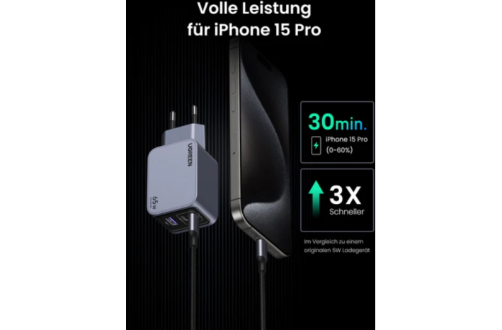 Manjša velikost, večja gostota energije. Ta polnilnik UGREEN USB C z visoko močjo 65 W je 55 % manjši od originalnega polnilnika 67 W, medtem ko se gostota energije poveča za 117 %. Tako bo bolj kompakten in prostorsko varčen, idealen za potovanja in lahko izjemno hitro napolni vaše naprave.