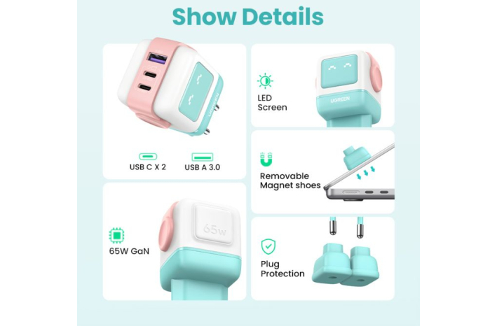 Polnilnik USB C s 65W združuje funkcionalnost z igrivostjo.