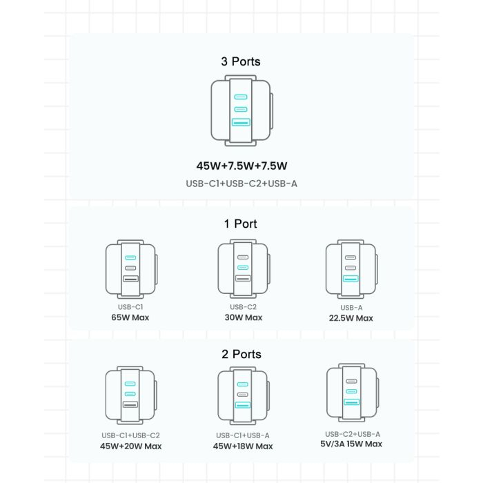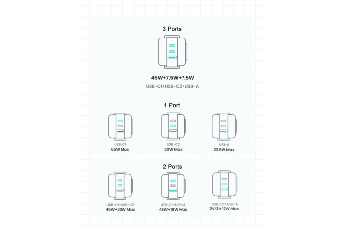 z 2 vhodoma USB C in 1 vhodom USB A je naš polnilnik združljiv z različnimi napravami.