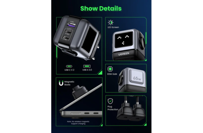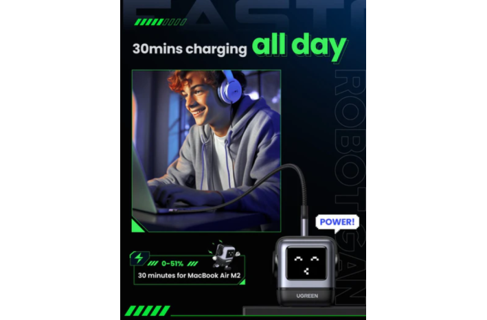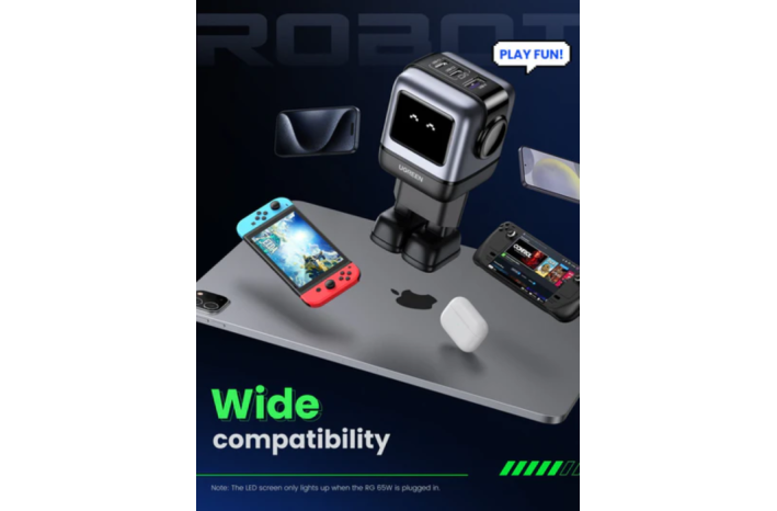 Polnilnik USB C s 65W združuje funkcionalnost z igrivostjo.