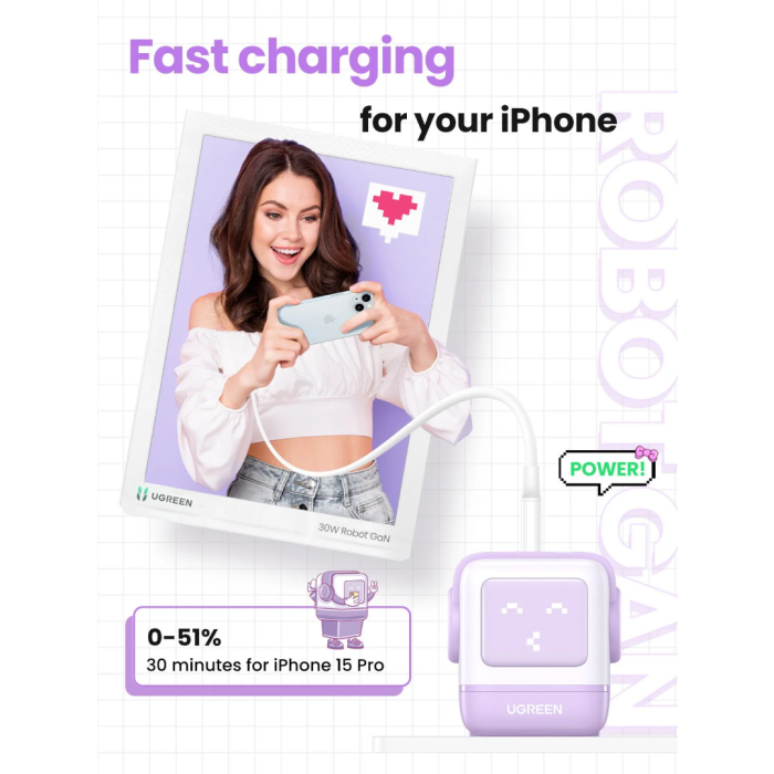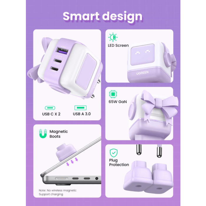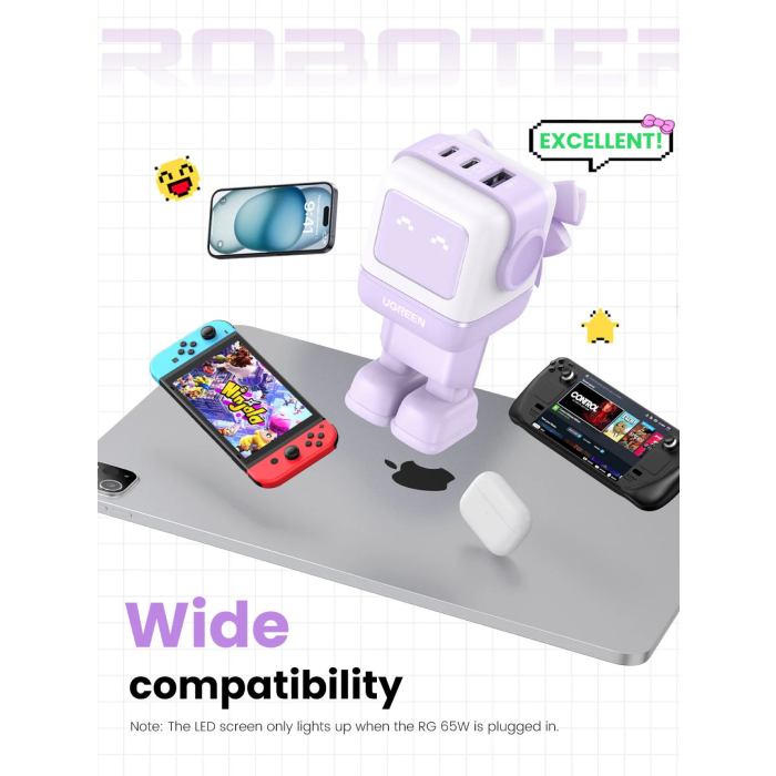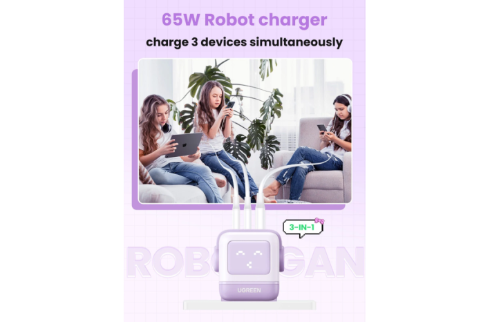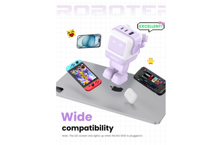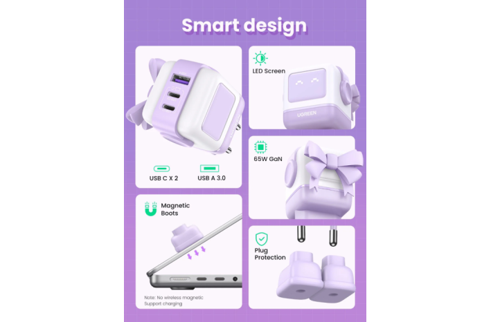 Polnilnik USB C s 65W združuje funkcionalnost z igrivostjo.