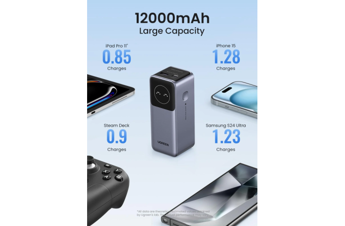 Zmogljivost napajalnika za hitro polnjenje je dovolj za 1- do 2-kratno popolno polnjenje nekaterih pametnih telefonov in tablic, kar močno podaljša čas uporabe. Digitalni zaslon prikazuje preostalo raven baterije in stanje na prvi pogled.