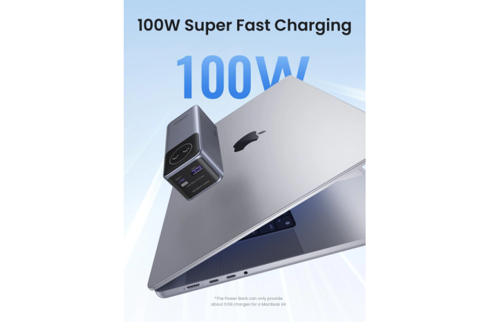 Hitro napolni naprave, kot je iPad Pro M4 do 40 % v 30 minutah, iPhone 15 do 60 % in MacBook Pro 16'' do 43 % v nujnih primerih. Zanesljivo napajanje kadarkoli in kjer koli.