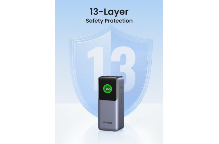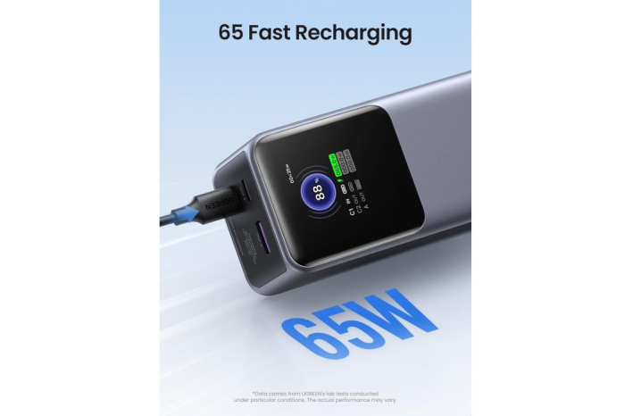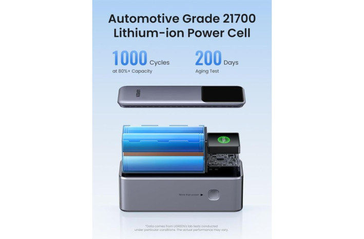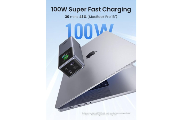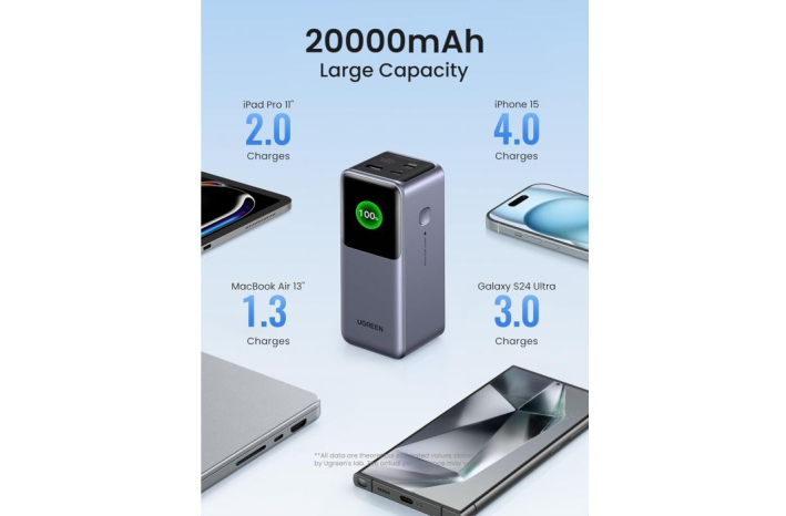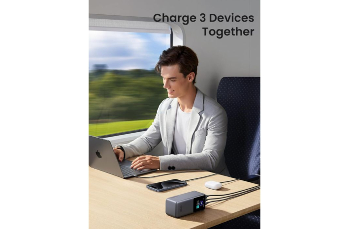 Ta baterija lahko hitro napaja več naprav, kot sta prenosnik in telefon hkrati, največja izhodna moč vrat OUT1 je 100 W, ki lahko napolni iPhone 15 za 55 % ali MacBook Pro 16'' za 43 % v 30 minutah